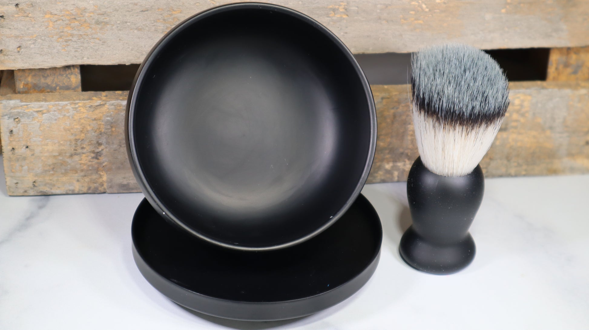 Looking to get into traditional wet shaving? You’ve done all your research and know you want to try a new shaving method that will reduce your skins irritation and keep your skin more soft and moisturized. This is a great entry level set that will help you fall in love with this art! A beautiful black matte bowl with lid and matching black matte synthetic bristle brush that will get you started. These accessories will look great on the sink or in the shower and fit in your hand comfortably. One of the bonuses of having reusable bowl and brush is you will only need to replace the shaving puck from time to time. This means the cost of shaving will be less and give your skin more. After using, simply leave the lid off to allow the shaving soap to dry and replace the lid as needed.